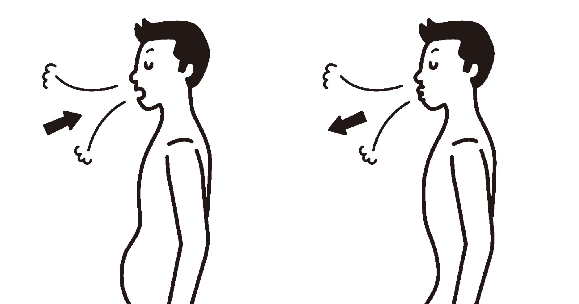 息の吐き方も、「フーッ」と口すぼめて吐くのか、「ハーッ」と窓ガラスを曇らせるように吐くか、などいろいろな方法がありますが、概ね共通しているのは、吸うよりも吐く方に時間をかけている点です。